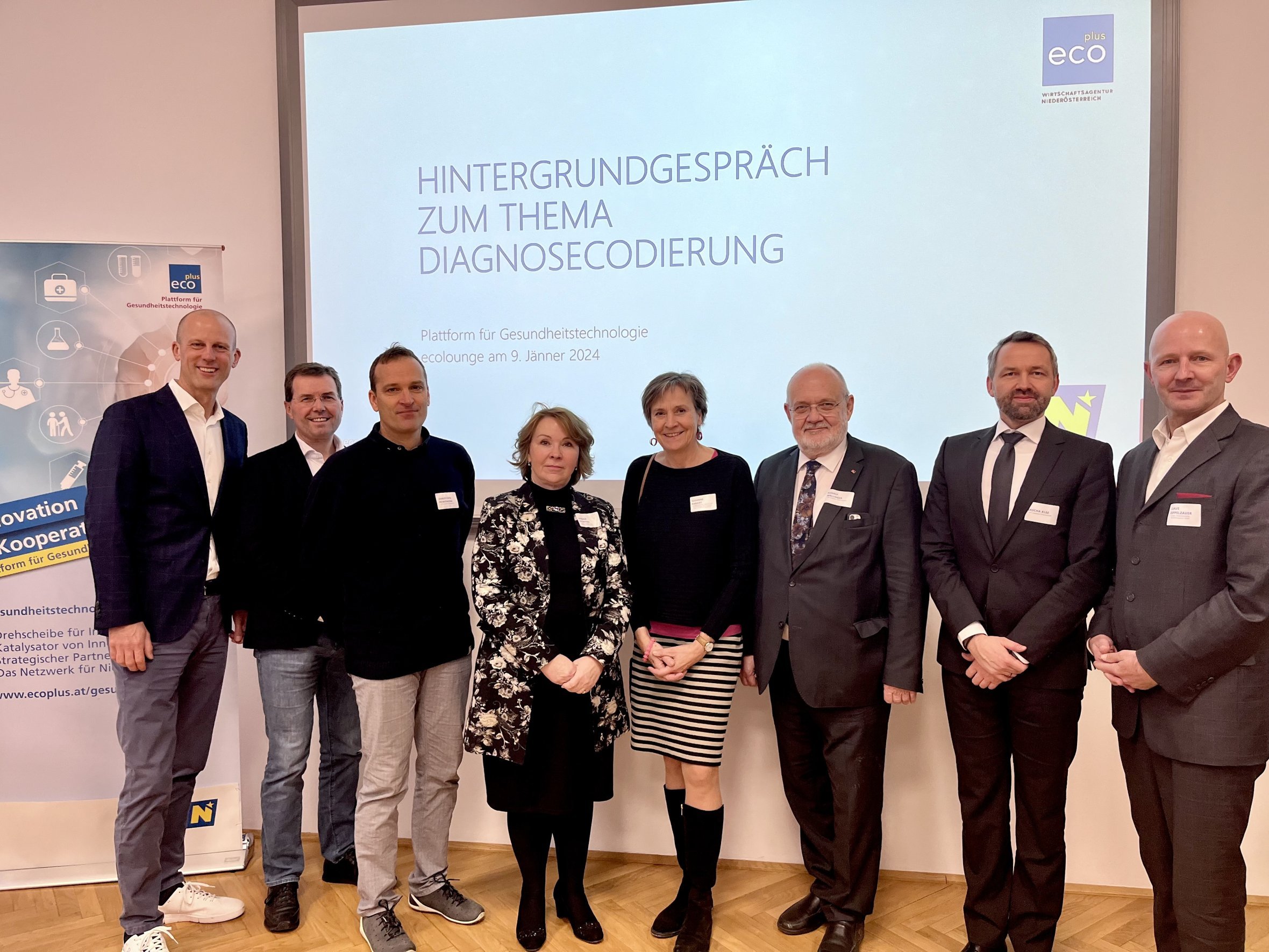 Um Niederösterreich sowohl als Forschungsstandort für die entsprechende Industrie als für die klinische Forschung zu attraktivieren, beschäftigt sich die ecoplus Plattform für Gesundheitstechnologie in mehreren Projekten mit dem Datenmanagement im Gesundheitswesen. Am 09. Jänner 2024 fand in der ecolounge ein Hintergrundgespräch zum Thema Diagnosecodierung mit Expertinnen und Experten aus dem Gesundheitswesen statt.