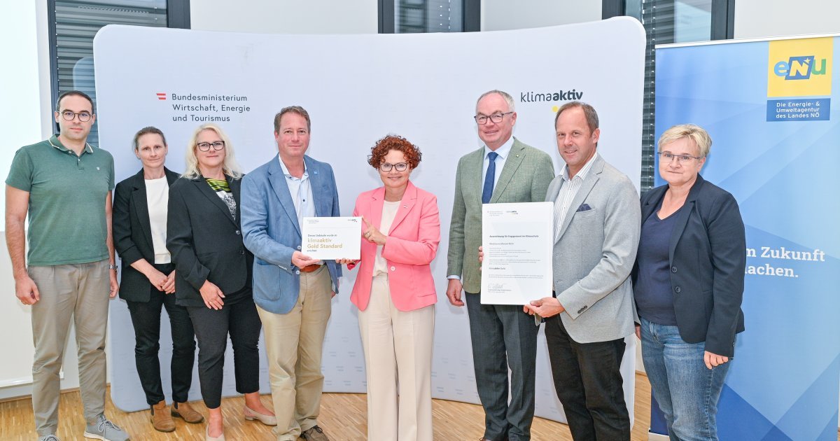 Am 22. September wurden im Rahmen einer feierlichen Veranstaltung an der Universität Krems herausragende niederösterreichische Bauprojekte im Bereich Klimaschutz und nachhaltiges Bauen ausgezeichnet. Energie-Staatssekretärin Elisabeth Zehetner und Landeshauptfrau-Stellvertreter sowie Energie-Landesrat Stephan Pernkopf ehrten gemeinsam die Gewinner des klimaaktiv-Gütesiegels, das für Energieeffizienz, ökologische Qualität, Komfort und Ausführungsqualität verliehen wird.