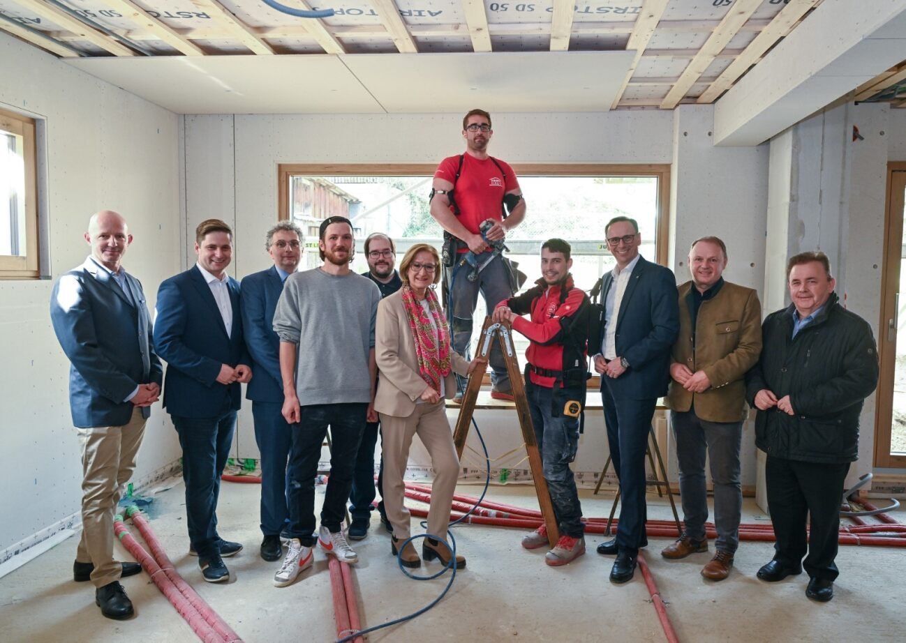 HARTL HAUS realisiert aktuell im Zwettler Wohngebiet ein Einfamilienhaus in Holzriegelbauweise. Im Innenausbau setzen die Mitarbeiter hier Exoskelette bei den Überkopfarbeiten ein. „Das Handwerk und das Können unserer Mitarbeiter machen die Qualität von HARTL HAUS und unseren Produkten aus. Unsere Mitarbeiter stehen hier im Mittelpunkt, und Technologien wie Exoskelette bieten die Möglichkeit, genau diese Unterstützung durch Technik zu gewährleisten. Gerade bei Überkopfarbeiten können wir so die Kräfte unserer Mitarbeiter schonen und ihre Arbeitsplatzqualität erhöhen. Unser Ziel ist es, unsere Mitarbeiter hier mit technischem Equipment bestmöglich zu unterstützen, damit am Ende ein Produkt entsteht, das nicht nur höchsten Qualitätsstandards entspricht, sondern auch für Wohlbefinden und Sicherheit steht“, so Dir. Yves Suter.