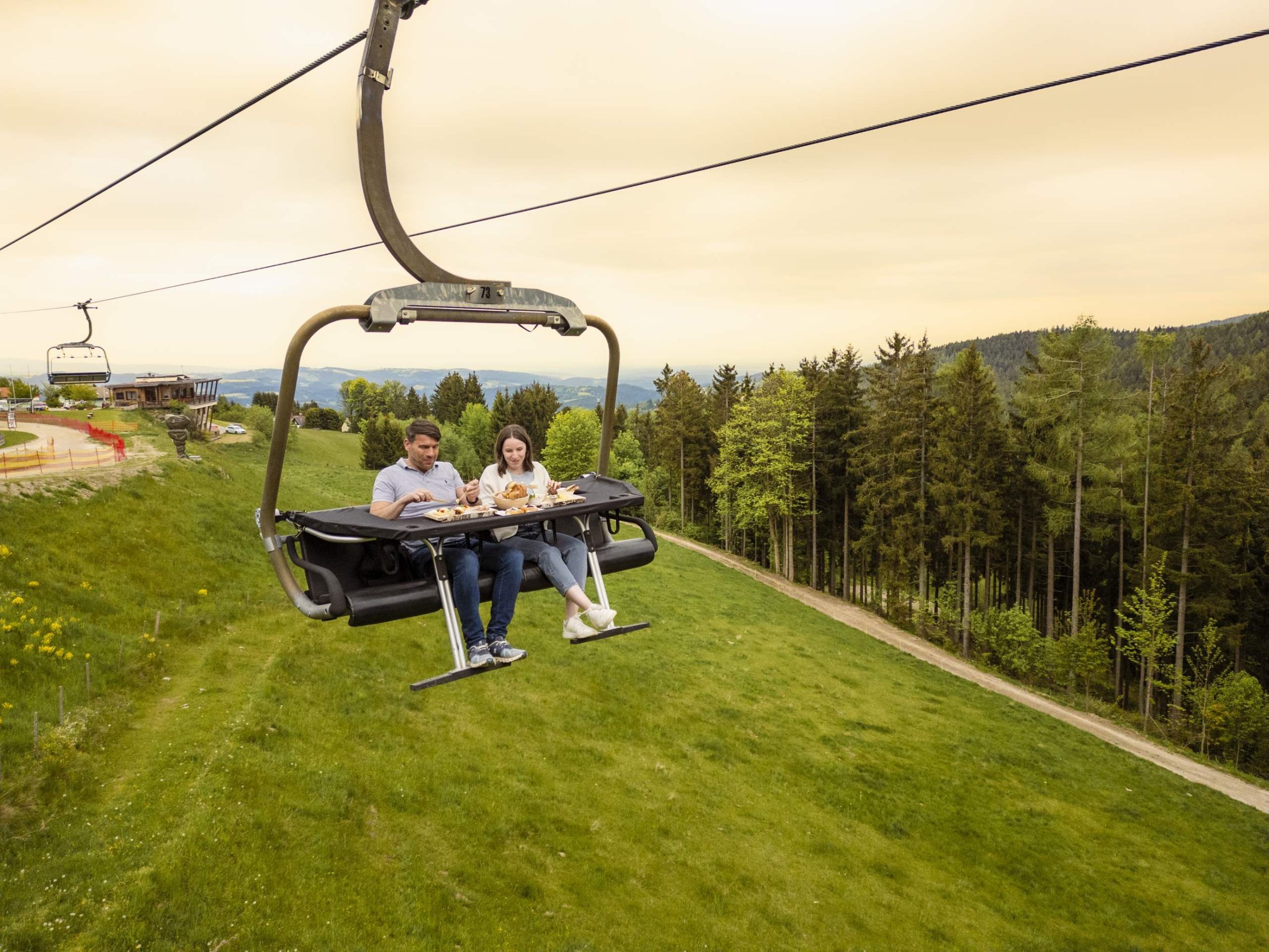 Der Ablauf ist ebenso einfach wie außergewöhnlich: Gäste nehmen zu zweit am Sessellift Platz, das Liftpersonal klappt einen kleinen Tisch herunter und deckt diesen direkt im Sessel. Die Speisen – geliefert von der Mönichkirchner Dorfbäckerei Dorfstetter – werden frisch serviert: vom Gebäck über Aufstriche bis zu süßen Komponenten, jeweils abgestimmt auf Frühstück oder Jause.